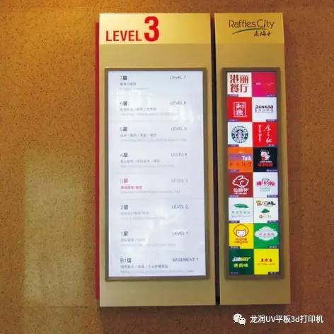 UV平板打印是UV固化油墨與數(shù)碼噴印技術(shù)的完美結(jié)合,它的出現(xiàn)使得傳統(tǒng)廣告客戶在噴繪打印中有了多元化的發(fā)展??梢栽贙T板、雪弗板、有機玻璃、鋁板、鋁塑板等各種廣告板材表面直接噴印所需圖案,替代寫真噴繪加覆膜工藝,且不脫膠、不起泡、省時高效。在標(biāo)牌制作過程中,利用各種打印方案,可制作出浮雕效果,閃光效果。使標(biāo)識標(biāo)牌更加生動,更加顯眼。